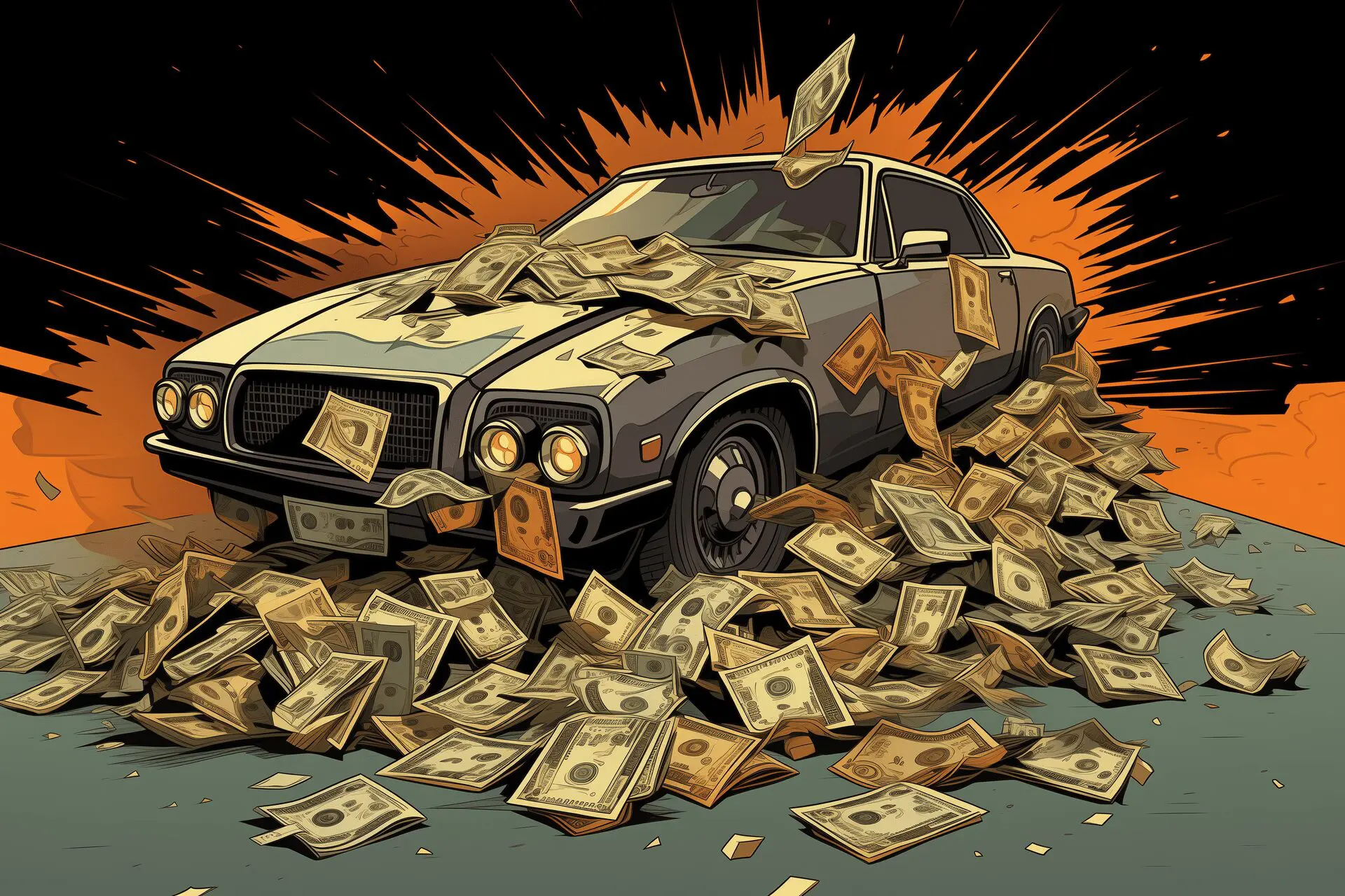 A car on a pile of money