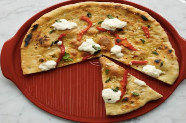 Turn your grill into an artisan pizza oven with this handy French pizza stone. Its rigid surface distributes heat evenly and cooks crust to crispy perfection every time. Plus, its lightweight design and integrated handles make the stone easy to lift. You can even cut the pizza right on the stone without worrying about chips or cracks.