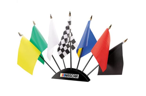 This gorgeous set of racing flags is ideal for the NASCAR fan with a home office. Each of these 3-by-5-inch flags sits in a wooden base inscribed with the NASCAR logo. The set comes with yellow, green, white, blue, red and black flags, as well as a checkered flag you can wave when you win a race — or accomplish a task.