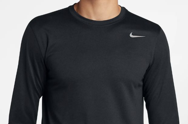 Stay comfortable during intense workouts in Nike’s Dri-FIT shirt. This long-sleeve T is 100% polyester so you can wear it as a base layer to wick away sweat. The standard fit has a relaxed, easy feel to provide a full range of motion.