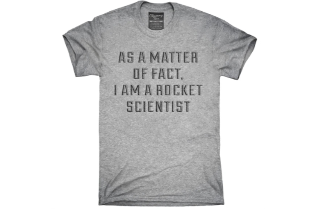There’s nothing better than a cheeky t-shirt when you’re looking for a gift. This heather gray shirt has the text “As a matter of fact, I am a rocket scientist” across the chest. It’s perfect for the rocket scientist or amateur rocket builders in your life.